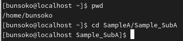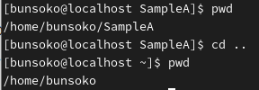 /home/bunsoko/SampleAから一つ上の/home/bunsokoに移動したことがわかります。