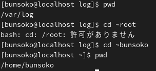cd ~root # rootユーザーのホームディレクトリ(/root)へ移動cd ~bunsoko # bunsokoユーザーのホームディレクトリへ移動