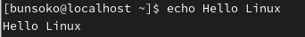 echoの後に指定した文字列や変数が、標準出力(通常は画面)にそのまま表示されます。