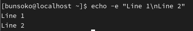 3. -e (enable-escapes) オプション:エスケープシーケンスを解釈する