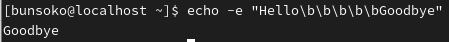 echo -e "Hello\b\b\b\b\bGoodbye"