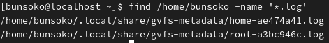 # /home/bunsokoディレクトリ以下で、ファイル名が「.log」で終わるファイルを検索