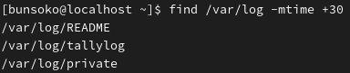 # /var/log以下で、30日より前(31日以上前)に更新されたファイルを検索