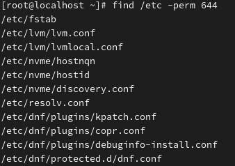 # /etc以下で、厳密にパーミッションが644のファイルを検索