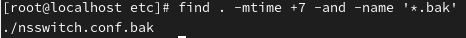 # 最終更新日時が7日以前 **かつ** ファイル名が「.bak」で終わるファイルを検索