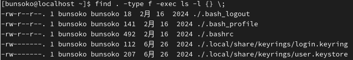 # 現在のフォルダ内で見つけたファイルに対して詳細表示(ls -l)する