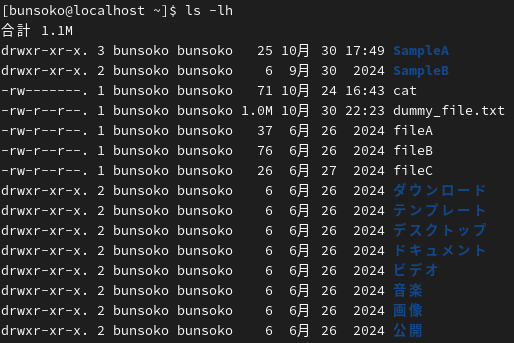 ちなみにls -lの場合は以下になる。dummy_file.txtのサイズが1048576となっており、一目でわかりにくい。