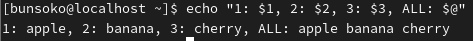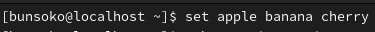 setコマンドにオプションなしで引数を渡すと、その引数がシェルの位置パラメータ($1, $2, ...)として設定されます。