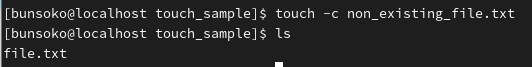 -cオプションを付与することで、non_existing_file.txtが作成されませんでした。