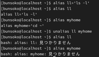 エイリアスを削除する際は、unaliasの後にそのエイリアス名を指定するだけです。